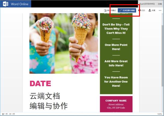 近日,腾讯微云与微软Office、世纪互联三方达成合作,免费支持微云网页端文档在线编辑及协同编辑,为用户解决了跨平台、多终端接入问题,有助于多用户间的协同办公,极大提高办公效率。 2016底,腾讯微云APP成为国内首家、全球首批与微软Office移动端应用合作的云存储应用。今年腾讯微云与微软Office又进一步针对PC端用户文档管理、实时同步、编辑修改、分享、协作等功能持续进行深入合作,由世纪互联运营的Office Online服务支持腾讯微云用户网页端Office文档在线查看与编辑、多人协同编辑的功能,再一次丰富了个人云存储的使用场景。 文档在线编辑 用户可以通过微云网页端直接打开 Word Online、Excel Online 和 PowerPoint Online 进行文件编辑,并且所有的更改将自动保存到微云。该功能省去了下载、保存、上传的繁琐步骤,最大限度地简化云端文档处理流程。 具体操作步骤: 1、打开Office文档