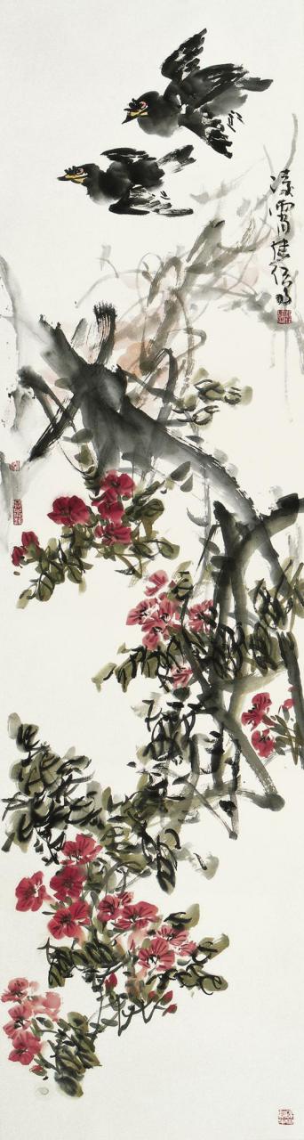 大吉图 (文/贾德江)纵观现代花鸟画坛,工笔花鸟已是枝繁叶茂,姹紫嫣红、奇葩异草,呈现一派明媚春光,正以面向世界艺术的态势,迎来新的繁荣昌盛。而步入当代写意花鸟画尤其是大写意花鸟却不尽如人意。虽然涉足者不计其数,实难见的笔墨精妙之佳作。传统功力的弱化,文化含量的浅薄,难脱古人的范式,缺乏个性化的表现等等诸多不容回避的问题,让大多理论家和关注大写意花鸟画发展的有识之士无不忧虑地发出了期盼“大写意”新突破的呼唤。开创当代大写意花鸟画的新纪元,成为盛世中国的时代需求和人民的心声。