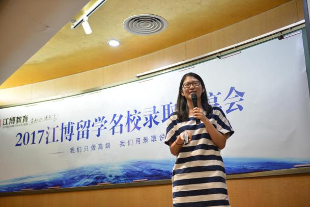 早申阶段就斩获芝加哥大学的计同学通过视频和现场的观众分享了她成功的经验,在与江博结缘的十来年里,她在江博教育的各位老师的帮助下拿到耀眼的标化成绩,江博留学团队的夏校申请结果又成为她了精准选校的助推器,最后她建议学弟学妹们一定要提早规划,高标化、高GPA以及充分的申请准备永远是录取名校的不二法门。