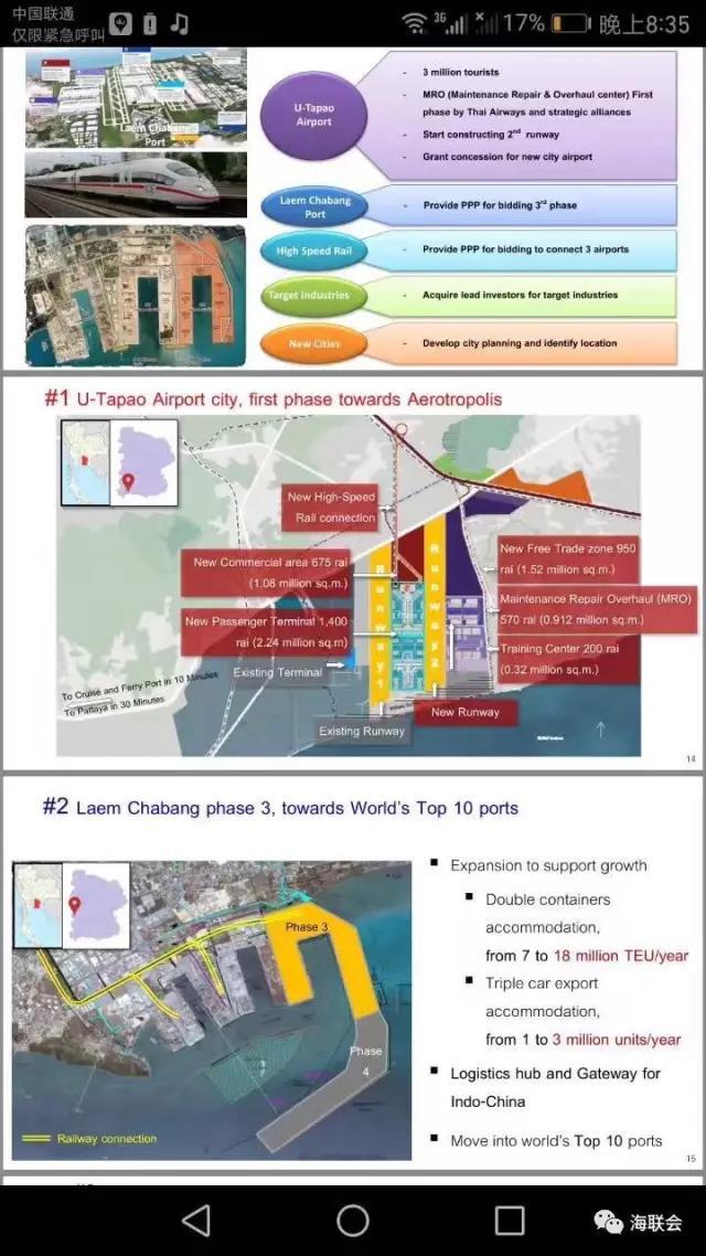 海联会在推进“一带一路”相关工作的时候,注重分阶段实施。在第一阶段,始终把“周边”作为重点地区。并且,在周边建立“海基地”,作为推进“一带一路”的海外重要阵地来打造。目前,泰国政府已就乌塔堡空军基地(原美军租赁到期撤出)和海联会进行磋商,准备将其改造成为中国在东盟的一个重要的航空物流中心,同时发展成为地区稳定的中国——东盟合作中心。海联会以此为模式,也已经和吉尔吉斯坦国家政府有关方面提出接手原美军空军基地的改建项目,打造成为中国——欧亚经济联盟中心。
