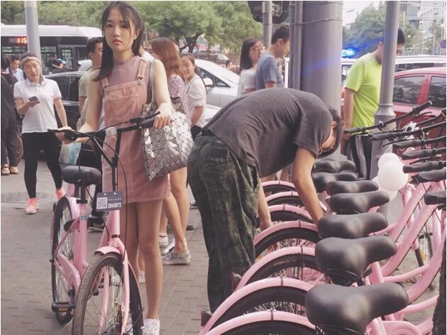 5月20日,在北京欢乐谷,蓝色港湾,中关村,和三里屯街头悄然出现了数百辆粉色共享单车,清新的色彩和造型引来路人纷纷驻足拍照,不少女生大呼“太可爱了!简直是共享单车中的小仙女”。不到三小时,这些粉色的单车几乎都被骑走,成为520街头一道独特的风景线。