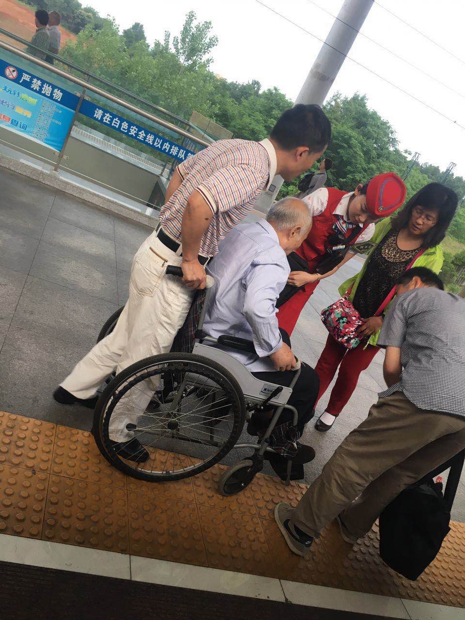 穿制服者为刘欢 昨日,G519次列车上现温馨一幕。为方便手术后的老人下火车,列车长专门致电信阳东站,提前为老人准备了一辆轮椅,帮助老人下火车。 昨日下午,河南的赵女士急匆匆地找到武汉局G519次列车长刘欢,原来,她85岁的老父亲在北京协和医院做完开胸手术刚出院,现在要回老家信阳,希望列车长能联系一下信阳东站,提前准备一辆轮椅,帮助老人下火车。看着轮椅上虚弱的白发老人和一脸憔悴的赵女士,刘欢心里一酸,连忙将老人家引至方便轮椅上下的五号车厢,让列车员倒来了两杯热茶,贴心的叮嘱赵女士,让她放心,轮椅一定联系好!一路上,列车长和5号车厢的列车员陈丹像对自己的亲人一样细心照顾着老人。车到信阳东站后,工作人员已经早早地将轮椅推到5号车厢,列车长小心翼翼的将老人扶下车,妥善安置在轮椅上,赵女士和她的家人连声称谢。(山今) |