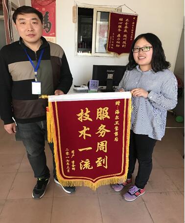 古人云:“举手之劳,何足挂齿。”负责安装海尔卫玺智能马桶盖的周师傅正是抱着这种态度进行工作,上门检测产品时,顺手修好了用户家常年滴水的水龙头,他的举手之劳换来了用户的真心感动。3月下旬的一天,家住青岛市北区的李女士带着“服务周到 技术一流”的锦旗来到海尔卫玺智能马桶盖青岛服务站,点名找到几天前为她服务过的安装工程师周师傅表示感谢。
