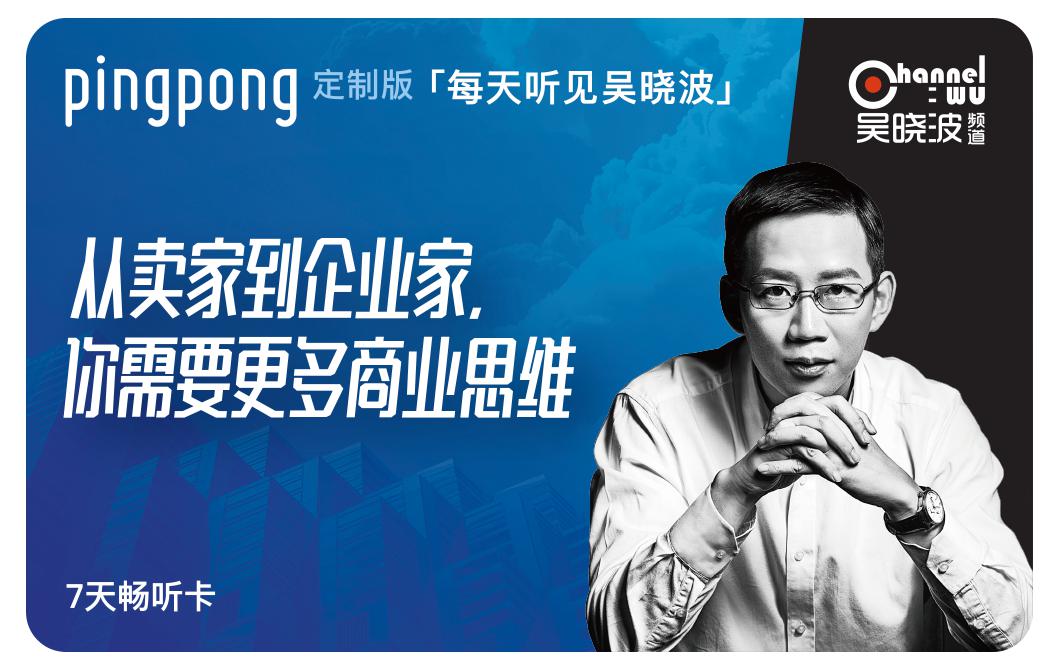 近日,PingPong联合吴晓波频道,专为跨境电商圈的卖家推出7天畅听卡。卖家拥有该卡,即可在7天会员日内免费畅听《每天听见吴晓波》的所有音频内容。