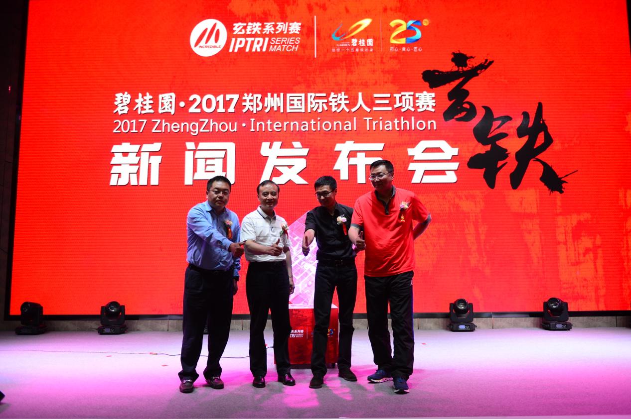 多方单位汇聚一体 共同助力赛事举办 本次赛事由河南省体育局,郑州市人民政府主办,河南省自行车现代五项运动管理中心、郑州市体育局、铁人联盟(北京)体育文化有限公司、河南世纪中原体育文化有限公司承办,郑开国际马拉松执委会协办。 发布会现场,河南省体育局党组成员、巡视员吴治国受邀出席,谈到本次赛事给予了高度期望与祝福:2017郑州国际铁人三项赛的举办,开辟了我省体育运动新的特色赛事品牌,对推动我省群众性体育活动和全民性健身运动的发展,做大、做强我省的体育事业,促进我省体育旅游经济的发展,将发挥重要的作用。