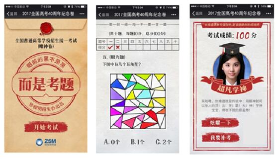 1977年,高考大门的重新打开,无数年龄悬殊、身份不同、背景迥异的人涌进考场。转眼40年已经过去,无数青年学子通过高考改变了人生轨迹,也在时代中留下了烙印。 这40年中,社会环境不断变化,不变的却是万千学子们对梦想的追逐和付出。为此,一摞摞书本和试卷,三点一线的生活成为了高考学子的标配,随之而来的,还有恼人的近视。据统计,我国的近视人口达4.5亿,占总人口1/3,其中高考生的近视率,已经超过了70%。而在高考录取范围内,诸如警察、飞行等不少专业都对视力有着明确的要求。如此高的近视率和专业报考限制,足以显示护眼对考生们的重要性。 当前,正值高考恢复40周年,为了提醒广大考生们爱眼护眼,珍视明推出了一套脑洞大开的全国高考40周年纪念卷。