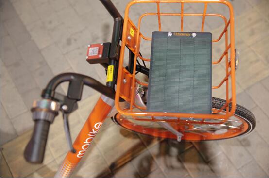 摩拜单车上的“Hanergy”标识和 “Mobike”标识交相辉映 汉能“黑科技”助推绿色骑行 首批与汉能合作的摩拜单车都装载了5.5瓦的汉能MiaSolé的薄膜太阳能组件,将为摩拜车载智能锁中内置的“北斗+GPS”模块、物联网芯片供应源源不断的绿色能源。