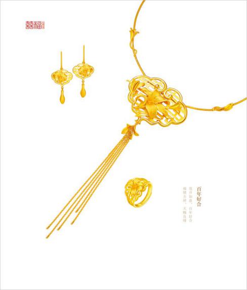 一项统计数据显示,中国每年有近1200 万对新人结婚,按照每对新人平均消费20 克黄金做计算,结婚金饰的潜在市场已超过600 亿元。面对如此规模庞大的市场,北京菜百首饰认为,黄金的本质,是价值感、文化厚度极高的贵金属,围绕市场的变化去推动黄金市场、激励黄金消费、传播黄金文化,是菜百首饰的责任。如今,虽然结婚金饰的潜在市场巨大,但“同质化”现象让终端陈列的产品缺乏内涵和个性,在年轻人眼里,黄金对他们的吸引力还有待提升。因此,唤醒年轻人对黄金文化与情感的价值认同,塑造黄金的文化魅力和情感关联度,成为黄金打入年轻消费者市场的必要途径。 为此,囍福结婚金饰在满足现有客户需求的基础上,迅速调整目标客户定位,充分发掘自身优势,通过在结婚金饰上不断推陈出新,在设计上大胆突破,赋予结婚金饰独特的个性,增加金饰的吸引力,将传统与时尚相互结合,既保持结婚金饰的传统韵味,又符合当下的流行趋势,以吸引更多的90后消费群体。例如,囍福结婚金饰的一款名为“百年好合”的饰品,采用百合花为设计元素,在中国传统文化中,百合花寓意“百年好合”“白头偕老”之意,自古被中国人视为婚礼必不可少的吉祥之花。在产品造型上,百合花结合双喜如意锁形,融中国传统元素和精湛黄金工艺于一体,既时尚精致,又端庄大气,颇受年轻消费者的喜爱。