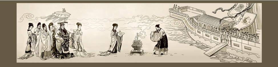 秦皇求仙图 霍大师主持设计秦皇岛旅游礼盒《大秦至宝》。从文房用品的包装、纹饰、材料、制作工艺及使用方式做了大量的研究考证,继承中又得以发展。《大秦至宝》独具匠心的结构设计巧妙地容纳了“书画笔、手工墨、砚台、镇尺、印石、古法印泥、印规、裁纸刀、笔山”等文房之宝。将文房用品的规制及品质推向了新的高度。表达了对中国的书画文化的崇敬。