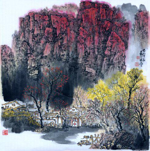 不仅于雪乡山水,在他的另两类作品中,也表现出上述的特点:一类是表现出农家院落风情的工笔画,如《走进祥和》《清秋》《梦忆童年》《清风徐来》《庄户人家》《关东腊月等作品:一类是表现山情水境的写意画,如《春山幽谷图》《秋色人家》《山里情》《连山绝壁》《石泉野翠》《归家图》等作品。前者以表现家禽牲畜为主.也有以农家屋前屋后的环境入画;后者是采撷北方山景于笔下,表现出浓浓的乡土味和独特的文化地域特征以及生意奔宕的笔墨。