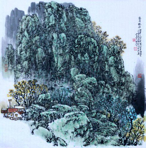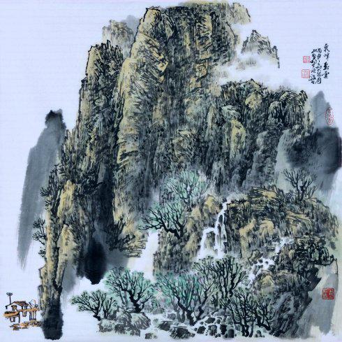 他的写意山水已把表现雪乡的技法束之高阁,已变写实的笔墨为写意的笔墨,有两种面貌十分引人注目:一种格法取法宋人,所画崇山峻岭、干岩万壑,呈现出“得山之骨.与山传神”北派山水的雄强之美;另一种笔墨源自于元人.突出了用笔的松活和用墨的苍润,黄公望的“尽峦嶂波澜之变,亦尽笔内笔外起伏升降之变“对其影响尤深。他继承了历代山水回名家的写生传统.以真山真水为师,故他能”搜尽奇峰打草稿”,“笔墨当随时代”,将其最受感动的也能感动别人的如画江山写生记录,经过加工提炼,创作出比大自然更真实、更美的山水画艺术形象——或在广大空间的重峦叠嶂中驰骋神思,或在一方居落、一方风土中寄托有动于哀的深切情感。其感人之处,是因为他的作品源于自然,强调了根据不同地区、不同季节、不同景色具体物象的结构特征,选取不同的绘画语言加以表现,不以奇怪为高,而以平中求奇为胜,像他的“雪乡山水”一样,追求在平常的景色中幻化自然、历史和生命的统一。