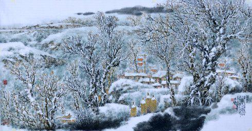 在历史上,有不少名家如唐王维,宋人李成、范宽以至马远、夏圭都有雪景的佳构,尤其是元人黄公望的《九峰雪霁图》,几乎无人不拍案叫绝。雪给了画家以梦境一般的美感,画家因而运用其灵动的画笔,表现出大自然寒林野村的雪景奇观。“雪景山水”由此而产生,并形成了传统的程式和规范,几乎都是以勾勒、淡染、留白或弹雪的方式,表现出“银色世界”的黑白之妙。