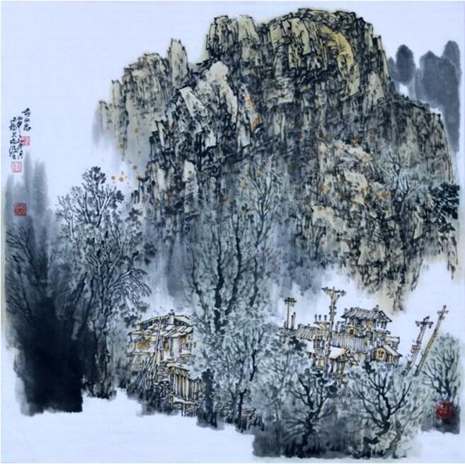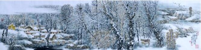 在历史上,有不少名家如唐王维,宋人李成、范宽以至马远、夏圭都有雪景的佳构,尤其是元人黄公望的《九峰雪霁图》,几乎无人不拍案叫绝。雪给了画家以梦境一般的美感,画家因而运用其灵动的画笔,表现出大自然寒林野村的雪景奇观。“雪景山水”由此而产生,并形成了传统的程式和规范,几乎都是以勾勒、淡染、留白或弹雪的方式,表现出“银色世界”的黑白之妙。