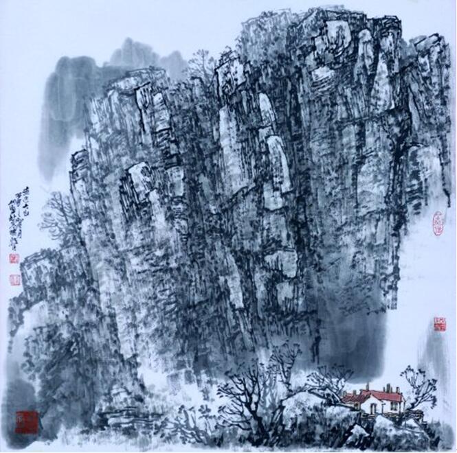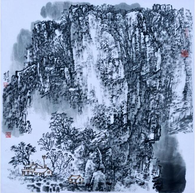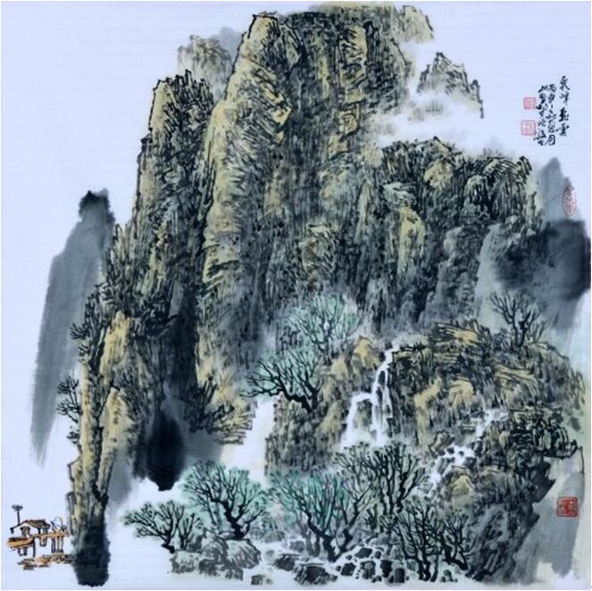他的写意山水已把表现雪乡的技法束之高阁,已变写实的笔墨为写意的笔墨,有两种面貌十分引人注目:一种格法取法宋人,所画崇山峻岭、干岩万壑,呈现出“得山之骨.与山传神”北派山水的雄强之美;另一种笔墨源自于元人.突出了用笔的松活和用墨的苍润,黄公望的“尽峦嶂波澜之变,亦尽笔内笔外起伏升降之变“对其影响尤深。他继承了历代山水回名家的写生传统.以真山真水为师,故他能”搜尽奇峰打草稿”,“笔墨当随时代”,将其最受感动的也能感动别人的如画江山写生记录,经过加工提炼,创作出比大自然更真实、更美的山水画艺术形象——或在广大空间的重峦叠嶂中驰骋神思,或在一方居落、一方风土中寄托有动于哀的深切情感。其感人之处,是因为他的作品源于自然,强调了根据不同地区、不同季节、不同景色具体物象的结构特征,选取不同的绘画语言加以表现,不以奇怪为高,而以平中求奇为胜,像他的“雪乡山水”一样,追求在平常的景色中幻化自然、历史和生命的统一。