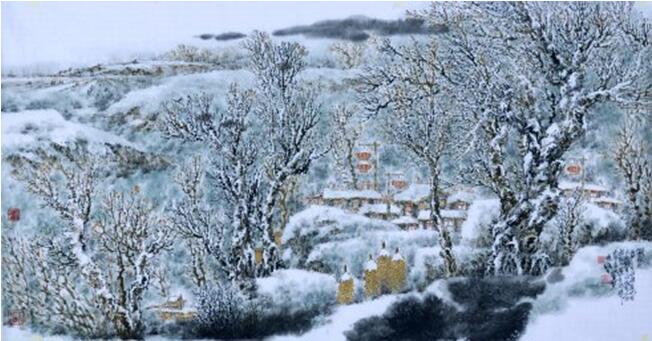 虽然苍天仍有狂风大作、飞雪满天、奇寒刺骨、举步维艰的“变脸”之时,但更有“喜笑颜开之日。若稍加留意,你就会观察到:雪后初晴,万物皆白,一树银花,美玉铺地,真是如入人间仙境。这是南方的任何一处胜境都不能比拟的。杜晓波正是怀着对故土的深情,融心魂于玉洁冰清的雪乡之中.发现了雪原景观的自身之美和它的审美价值,并倾注了几十年的心血开拓雪野、雪山、雪树、雪村的北国风光,创造了~幅又一幅的雪域的风情画卷,表达自己对改革开放后北方山村的雪乡人文景观的时代感受。这是“雪景山水”走向当代的新的境界,这是北方地域特征的再创造。杜晓波的画真正表现了东北地区特有的雪域景观之美,创造了“雪景山水”由传统走向现代的新的领域。