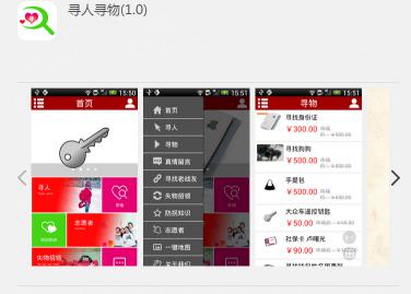 在【寻人寻物】首页的栏目导航中,设置了寻人、寻物、志愿者、注册会员、失物招领、寻找老兵、平台说明、招商加盟、防拐知识、娱乐、联系我们、积分兑换、爱心传递等12个项目。 大众创业,万众创新。互联网+已经进入了几乎所有领域,互联网+公益也暂露头角,进入百花齐放的时代,但由于“公益”的特殊性,资本对该行业的介入较低,缺少商业手段推动的公益事业,还没有一个完善的“生态圈”,公益事业的可持续发展业态还未形成。随着[寻人寻物平台]的上线,恰恰弥补了公益生态圈的缺口,在互联网+的大趋势下,【寻人寻物】也将融入到人们生活的点点滴滴中。 只需要简单的2步即可加入“寻人寻物”: 1、智能手机下载二维码扫描器→ 打开二维码扫描器 → 扫描上面的二维码 →确认下载 → 安装【寻人寻物】到手机桌面 2、打开智能手机上安装的各应用商店,查找【寻人寻物】,然后根据提示下载并安装到手机桌面 在如今的投资者看来,互联网创业已濒临红海,竞争激烈,谁能在互联网平台资源的整合中减少投资及运营成本,谁就能获得资本的青睐。显然,寻人寻物平台具备了这一优势,前景值得期待。 在深圳市云海航科技有限公司的推广宣传下,寻人寻物平抬即将成为全国最大的公益平台,期待您的关注与加入。