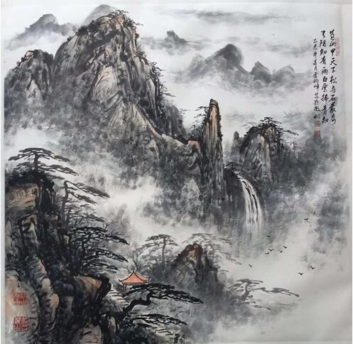 国画润格:国内26000/平尺 国际30000/平尺 李钧峰,男,号“黄山人”,国家一级美术师。现任安徽省美术家协会会员、中国书画家协会理事、中国青年美术家协会会员。李钧峰1992年入中央美院进修,94年进中国书画函授大学深造,1996年春拜新安画派代表人物,著名画家张仲平先生为师,专攻国画山水。近几年先后得名家许世山先生和陈显铭先生指导,感悟颇深。 2003年,作品《五百里黄山图》入选《国际文化艺术名人档案》,《新安江初晓》入选《中国当代书画家代表典库》;2005年10月创作的《黄山图》在中华名人全国书法美术作品大赛活动中荣获一等奖,同年12月《壮丽山河》荣获中国电影百年庆典书画大展佳作奖,在国家博物馆展出并入编大型文献《中国电影百年庆典书画作品集》。此外,作品《黄山云海》荣获2008奥林匹克之旅书画艺术大展国画类特等奖;2009年9月作品入编《中国国礼推荐与采购》,同年《雨后黄山色更奇》等3幅作品入编《新中国美术家选集》。2012年李钧峰的中国画《黄山烟云》入选第四届安徽美术大展。2013年国画作品《黄山烟云》、《雨后黄山色更浓》入编《中国当代美术家书法家大辞典》。《黄山迎客松》已被香港巨星周润发先生收藏。近几年国画作品远播英、德、美、韩新加坡及港澳台等国家和地区,深得海内外书画收藏者喜爱。