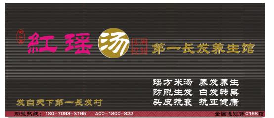 红瑶汤第一长发养生馆连锁加盟热线:400-1800-822/180-7093-3195,http://www.hongyaotang.com.cn,www.hongyaojs.com,QQ: 449381397. |