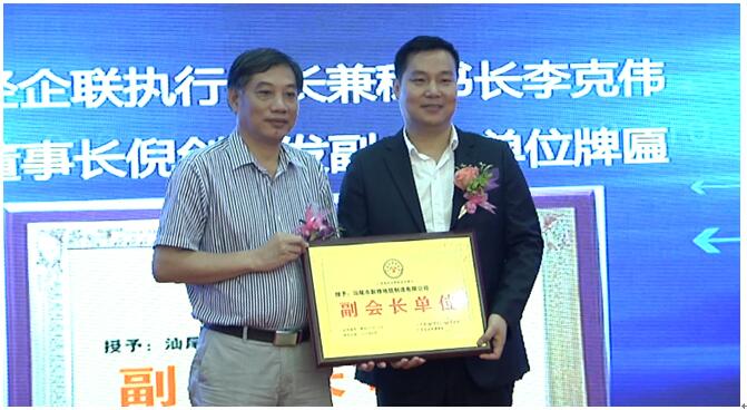 省经企联执行会长兼秘书长李克伟为新雅地毯董事长倪创颁发牌匾 汕尾市、市城区党委政府各级领导及有关部门领导、省经企联、投资机构、汕尾市各商协会领导、及企业家、新雅地毯员工代表、合作伙伴、代理商、经销商、加盟商、供应商及媒体记者参加了本次活动。清远市住建行业党委蓝剑锋一行四人应邀出席活动,省经企联常务副会长何燕欢、执行副会长朱英斌、副会长余祖开、理事童小林、执行秘书长陈利民、工会副主席陈格及秘书处人员参加了本次活动。 |