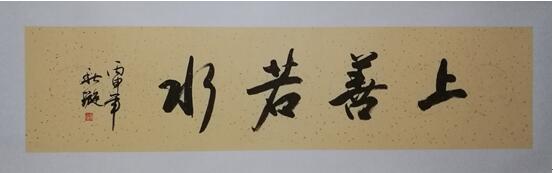(上善若水/林秋璇 书) 诺贝尔文学奖得主塞缪尔·厄尔曼曾言“每个人笔尖流淌出的墨汁香味色泽定是迥异的。”与林秋璇相识多年的朋友曾坦言,林秋璇给人的总体感觉是她是一个低调、有性情的一个人。之所以说林秋璇是一个低调的人,是因为我时常见到她给别人写传记与评论,而对于自己她却从来不愿过多地去提及。甚至在一次交谈中她道出了其中的原因“这或许就是一个书法人的秉性,总是喜欢将性情吐露在笔墨间,自己不说,让别人去细细品味。”是啊,这就不难解释为什么林秋璇会有如此高的成就了。一个书法人的秉性,在笔墨纸砚间吐露性情,与不言处胜过万言。她,林秋璇,作为一位以书为心画的书法家,一位字显性情的书法人……
