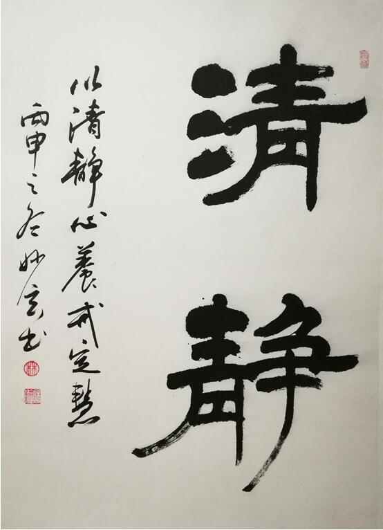 (清静/林秋璇 书) 她后又兼学篆、隶,出入碑帖,深得法度。为求得书中真趣,她游心于戏曲、武术、音乐等诸多艺术门类,只为有所感悟。她更是遍访南北碑林胜迹……师与古人,可一挥而成;师与自然,可怡心养性;师与心迹,可参悟性情。于是可遂得有味之真体,毫无斧凿之痕迹。以至于她后所涉猎的篆、隶等各种字体,都能大有所成。