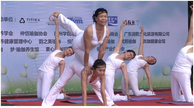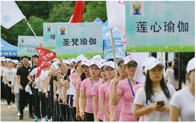 获惠城区体育局与各界行业大力支持 据其现场负责人介绍,本次活动由惠州市惠城区瑜伽协会主办,广东会长直通车、惠州市美容化妆品协会、惠州市文化创意产业协会、惠州市营养学会、仲恺瑜伽协会、惠州潮汕商会、惠州学院瑜伽协会、圣梵瑜伽、莲心瑜伽、惠州市獎門人健康管理有限公司、宝矿力水特等50多家单位协办,现场参与人数超500人,并由惠城区体育局指导。前来报道媒体包括惠州日报、东江时报、南方都市报、惠州电视台、广东电视台。