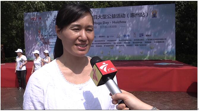 活动后,惠城区瑜伽协会会长罗小梅接受记者采访 记:罗会长,你好。此次是第三次国际瑜伽日,请你介绍一下此次的规模程度。 罗:第三届国际瑜伽日,以往的国际瑜伽日活动我们都是选择在室内去进行,这一次我们将场地选择在了城区政府对面的高榜山大广场,整个活动的协办单位瑜伽馆以及协会共计有50多家,现场超过500人参与了这次国际瑜伽日。