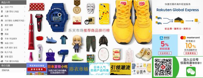 日本乐天是乐天玛特的网上商城,主要经营各类日本商品包括服装、鞋类、饰品、食品、电子产品、化妆品等,聚集了众多品质优良的商家,是日本本土最受欢迎的电商网站之一,也是开通国际业务最完善、服务最到位的大型商城之一。 乐天玛特原名“Rakuten”,创办与1997年的东京,目前主要开展电子商务业务,在全球范围内有超过一亿的用户,是目前全球最大的网上商城。