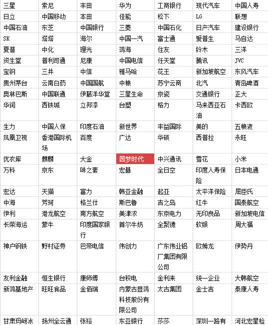 2017亚洲影响力品牌500强(部分品牌)