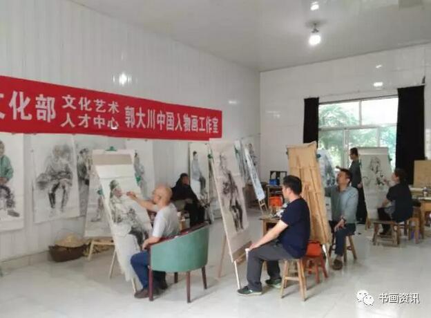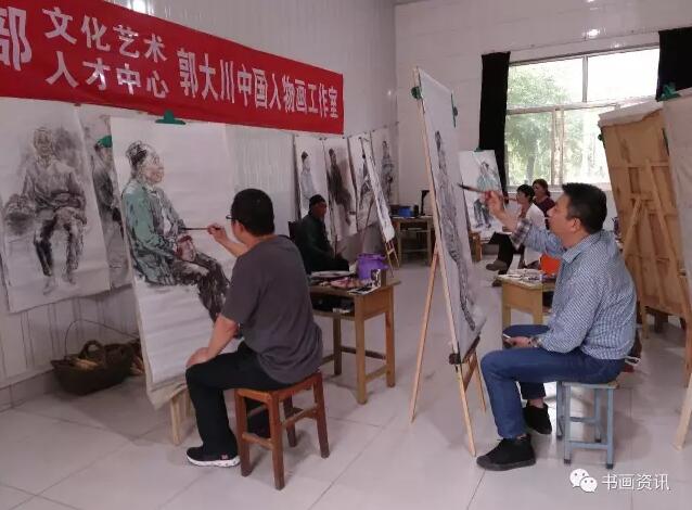 郭大川工作室山东淄博峨庄写生合影:(从左到右):郭相君(班主任),吴小卓,尹斌业,郭亮,郭大川(导师),郭心聪,卫九春,李志伟 教学理念 注重在中国写意人物画创作主体框架内设置对中国传统绘画、美学理论的消化与吸纳,使学员自觉地从中国文化中立定根脉,有选择地吸收西方文化有益营养。培养在生活中收集艺术形象和独立进行艺术创作的实际能力,理清中国人物画的发展方向,建立和完善学员各自的艺术语言形式。 导师 郭大川,1969年生于河北遵化。先后就学于哈尔滨理工大学、哈尔滨艺术学院(现哈尔滨画院)、中国艺术研究院研究生院、首都师范大学。 现为中国美术家协会会员,国家民族画院画家,文化部文化艺术人才中心郭大川中国人物画工作室导师,清华大学美术学院书画高研班导师,中国国家画院师生联谊中心副秘书长,首都师范大学刘大为工作室画家,中国艺术研究院杜滋龄工作室访问学者,任天津艺术教育进修学院艺术指导委员会委员、教授。 作品20余次入选文化部、中国文联、中国美协主办的大型全国性美展并获奖。多幅作品被中宣部、文化部、国家民委、中国文联、中国美协、首都师范大学、刘海粟美术馆、吴冠中艺术馆、乌鲁木齐美术馆等机构和私人收藏。出版:《郭大川写意人物》、《实力派精英 郭大川专集》、《学院派精英 郭大川》、《21世纪有影响力画家个案研究——郭大川》、《大家气象——郭大川作品》、《中国画廊推介画家精品——郭大川》、《郭大川中国画作品集》等多部画集。入编:《中国当代美术全集(现代重彩卷)》等多部丛书。2003年 加入中国美术家协会,2013年 为中共中央宣传部新建办公楼会议室创作巨幅国画《中国风》(刘汉俊题)。2015年 中央电视台CCTV拍摄专题片《萃笔墨之精华——中国著名画家郭大川》。 多幅作品发表于《中国书画报》、《美术报》、《中国美术》、《美术界》、中宣部《党建》、香港《大公报》、外交部《世界知识画报》等报刊杂志。