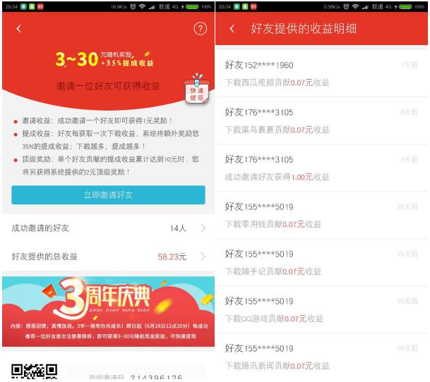 第三:邀请赚钱。恰逢惠锁屏三周年,邀请奖励极为丰厚,此时不下手更待何时呢?邀请好友填写您的邀请码,就能获得随机3~30元的现金奖励,也就是单次最高就有30元!对于点券288的英雄皮肤胜券在握了。 教你们个方法,可以在贴吧、朋友圈、QQ空间等渠道邀请,邀请几个好友,28888点券的英雄皮肤都不是梦了呢。