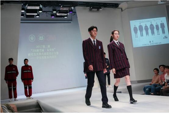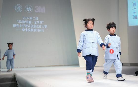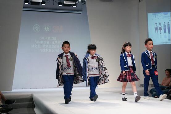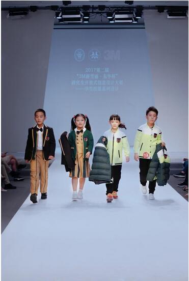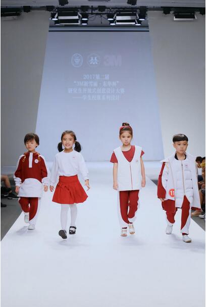 小学组秀场展示 本次大赛分为幼儿园组、小学组和中学组。参赛选手们通过前期的调研考察,挖掘市场对校服品质及功能性的需求,最终凭借对服装剪裁的独特解读、对3M公司新型材料的灵活运用、对设计风格的精心演绎,为每一件校服设计作品贴上了“科技创新”的标签。