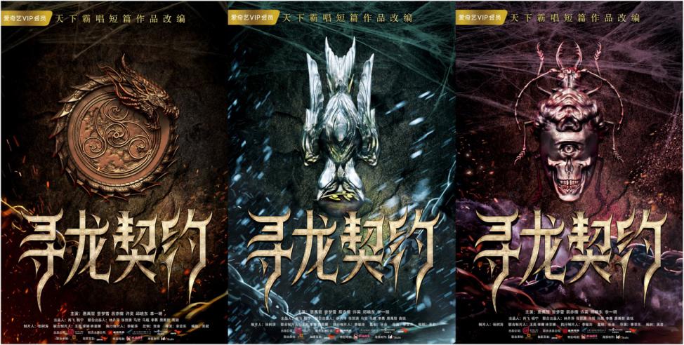 由吉吉向上娱乐出品,盛林传奇、上海飞翎影视、梵舍影业、映美传媒联合出品,映美传媒独家宣发,东晟影视联合承制,根据天下霸唱短篇小说改编的《寻龙契约》今日发布了概念海报。据悉,该电影由李亚东担任导演,并邀请了唐禹哲、辰亦儒(前飞轮海成员)、曾梦雪、许奕、邱晓东、李一明等一众实力偶像和人气鲜肉主演加盟。 三大家族族徽曝光引发身份猜测 此次片方一共发布了四款概念海报,主海报龙的出现让本片主题呼之欲出。其余三张海报分别向观众展示了故事里三个家族的族徽:封印者族徽、祭祀族徽和黑祭祀族徽。从发布的概念海报来看,《寻龙契约》不出意外还会延续天下霸唱一贯的魔幻风格。
