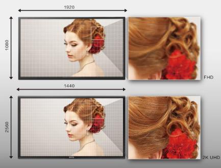 如果作品输出时被放大至像素级,细节瑕疵将会一览无余。这里取作品中的一个细节放大看,如图所示,一般1080P的显示器对于作品细节,比如发丝的呈现,不如2K分辨率的显示器。 指标3:灰阶数高 灰阶,是将最亮与最暗之间的亮度变化,区分为若干份。灰阶数越高,色彩过渡越自然。明基专业设计显示器PD2700Q支持1056级灰阶,灰阶数较高,色彩渐变格子显示自然流畅。 指标4:方便做图 明基专业设计显示器PD2700Q支持完整人体工学,自由升降之余,还可以90°旋转屏幕,方便在显示器上完全显示竖屏的设计作品,满足不同角度的观看需求。同时,考虑到设计师面对显示器的工作时间较长,这款显示器配有滤蓝光、减少闪屏技术,以减轻设计师眼睛的疲劳感。