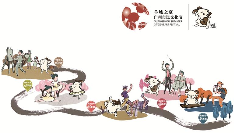 羊小夏”惹人喜爱的文化节吉祥物 可爱吉祥物“羊小夏”首次与市民会面 此前,“羊城之夏”2017广州市民文化节开展向全社会征集LOGO和吉祥物活动,在投稿作品中,既有专业设计师,也有高校师生,设计爱好者等。不仅广州市民热心参与,还收到全国各地热心读者踊跃投稿,共计收到有效投稿LOGO作品130幅、吉祥物作品47幅。经专家评审,共评选出获奖作品各6幅(金奖1幅、银奖2幅、铜奖3幅)。经公示后,7月8日下午,文化节组委会对获奖作品和个人进行颁奖。 LOGO金奖作品,提取具有广州标志性元素的满洲窗、广州塔、珠江水、木棉花,加工提炼出一个易于辨认、延展性强、颇具新颖性的标识。LOGO通过俯视角度抓取木棉花在空中飘落的瞬间,花瓣与珠水上的广州塔邂逅,形成球面剪影的立体效果,既融合羊城的历史文化、城市发展和市民情怀,又寓意“立足广州,放眼全球”的国际视野,充满美好祝愿。 吉祥物金奖以“初心羊城”为出发点,创作出“羊小夏”这一惹人喜爱的文化节吉祥物。温暖、亲民、可爱的“羊小夏”将作为文化节形象大使,带领市民漫游文化广州。 精彩文化活动绽放整个羊城之夏 本届市民文化节特别选取了多个具有代表性的活动,通过文图展览的方式进行活动推广,活动包括:“乐舞飞扬”广州市音乐舞蹈大赛、“文明广州 舞动花城”广州市广场舞大赛、羊城少儿艺术花会“向阳花开”少儿音乐舞蹈才艺大赛、2017年穗港澳粤曲私伙局大赛、Reallife我们的生活-中国(广州)嘻哈潮流文化周、“喜迎十九大”广州市合唱比赛、2017广佛肇清原创音乐作品展演、“花城花开 文化有约”——广州市群众文艺精品巡演、“美丽花城”拍客、微电影网络邀请大赛、“共享文化 放飞梦想”2017年南沙社区文化节、“遇见艺术”高雅艺术欣赏季、二沙岛户外音乐节等。