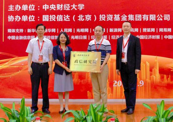 傅绍林书记与裴棕伟董事长为中央财经大学政信研究院揭牌 大会上,傅绍林书记与裴棕伟董事长(中财政信研究院理事长)共同为政信研究院揭牌,并为中央财经大学博士生导师安秀梅和中国政信研究院执行院长陈功颁发政信研究院院长和副院长聘书。这标志着中央财经大学政信研究院开始正式运行。