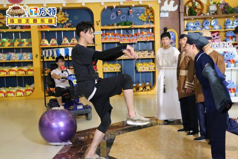 从智者口中得知,在本次“取经”之路上,探秘团每人都有着与《西游记》中师徒一一对应的身份角色,但八人中有真有假,作为唯一的“师父”吴亦凡,需要分辨出谁才是自己真正的徒弟。在《丛林的故事》设计精妙的升降舞台后的下沉密室中,探秘团成员分别知道了自己的身份。而江湖人称“赵小刀”的赵丽颖在本期节目中升级“赵大刀”,拿到猪八戒身份的她不断自嘲:“我是猪队友”、“我是猪”,网友们都表示被赵丽颖的耿直折服。 知道各自身份后的众人在方特梦幻王国入口处的喷泉广场进行了首个任务“动作暗号游戏”。喷泉广场是方特主题周边商品售卖地,有着最全的熊出没周边、嘟比嘟妮周边等主题商品,当吴亦凡在商店中试探吴磊身份:“你是悟空?会七十二变吗?”机智的吴磊指着身边的方特周边商品:“这都是我的分身。”