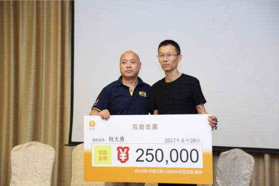 三年以来的发展,e互助始终坚持采取银行托管制度,并且托管账户独立运营,会员充值资金全部用于互助支付,平台不向会员收取任何费用。e互助在探索与实践后,重新使得传统互助焕发新的活力,在互联网场景下,更加有效地满足社会中低收入阶层对大病风险保障的需求,成为社会保障的有力补充。 受助会员:相信好人好报,加入时毫不犹豫 在会议进行中,主持人也邀请前来参会的代表会员们上台为大家分享自己与e互助之间的那些动人故事。首先上台的是患癌会员何大勇,他也是e互助最新一期公示名单中的受助会员,在经过e互助核实情况后,患有结肠癌的他收到了全国会员为其筹集的25万元互助金。今天,他满怀感恩的心情,特地从菏泽赶至烟台来为现场观众分享他与e互助间的故事。“当我了解到e互助是一个既可以帮助别人,又能保障自己的平台时,我没有多想,立即就扫描二维码加入了,没想到自己真有需要帮助的一天,非常感谢大家。”在台上的何大勇向e互助表达了由衷的感谢,也更向全国会员表示了最真挚的祝福。