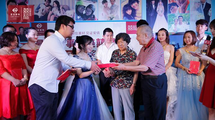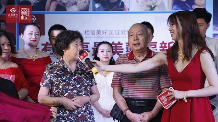 金婚老人57年共度风雨、一路走来的携手,与现场十对新人的聚首,如同开启了一幕神奇的时空隧道,白首夫妻曾经也是青春飞扬的新婚爱侣,年轻的爱人也终将在岁月的洗礼下白发苍苍,唯一不变的是一生的约定和诚挚的爱情。莫宝莹和徐慧远老人向我们诠释了彼此包容、相敬如宾、相濡以沫的爱情真谛,这也正是菜百与囍福一直以来倾注在婚庆产品中的价值观相契合。 菜百囍福强强联合,创新婚庆珠宝市场 面临经济新常态,黄金珠宝企业如何能在压力中前行是菜百及囍福一直以来思考的重点:为应对品牌多样化、品类多元化的市场变化,以及90后、95后等新一代消费群体的迅速壮大,菜百公司作为黄金珠宝行业内的标杆企业,率先垂范,携手囍福结婚金饰寻找更注重工艺与文化内涵的产品,让行业和消费者在市场转变和转型的过程中看到“精耕细作”的重要性,开辟囍福金饰的新市场。
