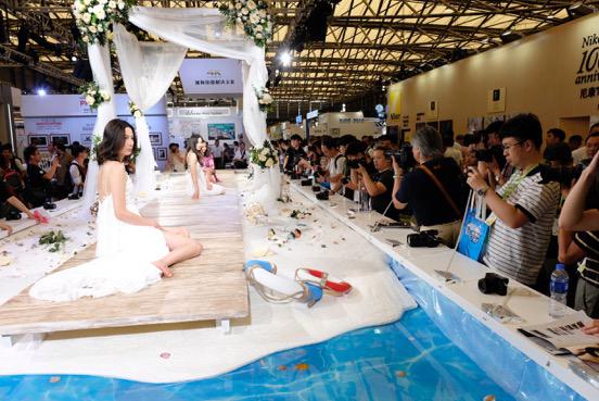 回到富士胶片展台,舞台拍摄体验区时刻人头攒动,热闹非凡。迎合夏日活力气氛和婚纱季热点,以浪漫海滩婚礼为主题设计的舞台,边缘摆放GFX50s、X-100F、X-T20等新品相机和X-T2、X-Pro2旗舰机型,结合了舞台与Touch&Try的功能,现场观众能够在专人指导下尽情操作,全面体验富士新品相机。