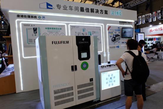 而此次富士胶片(中国)还为专业影楼车间用户带来了绝佳的解决方案:银盐冲印废液处理系统和自动相册装订系统。 银盐冲印废液处理系统获得中国环境标志认证,通过该系统能够对银盐冲印设备生产过程中的彩显废液、漂白废液和稳定废液,划时代地进行三合一的处理和浓缩,在车间就可降低废液80%,实现环保化生产。同时有效减少后续废液集中处理所需要消耗的能源,降低二氧化碳排放量,降低用户废液处理经费。银盐冲印废液处理系统此次也来到了现场,小巧的体型,安全简明的操作,受到了在场许多专业观众的关注。