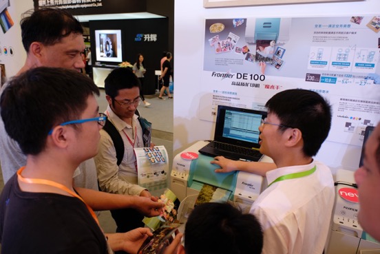 在一站式冲印服务区域,全新数码商用干式打印机DE100,和可实现自助打印的富士热升华打印机ASK300,受到现场影楼和彩扩店经营者的关注。这两款新品可以和各种输入端设备组合,形成不同的解决方案,应用于不同类型的自助打印服务站,方便地为影楼、彩扩店、零售店的影像服务项目、景点影像输出、证照输出等提供了丰富的图片加工方式。