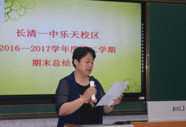 7月6日下午,长清一中乐天校区(非韩国乐天玛特)在新录播室召开全体教师会。 会议首先由胡连波、郭其泉两位主任做工作述职报告。2016年,根据学校工作需要,胡连波、郭其泉两位老师走上学校领导岗位,分别担任九年级和八年级级部主任。一年来,胡主任和郭主任团结、带领两个级部的教师用实际行动向学校交上一份满意的答卷。两位主任详细的汇报了自己一年来在级部管理方面所做的工作,教师们用热烈的掌声表达对两位主任工作的肯定。