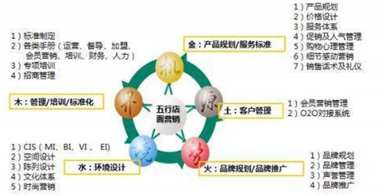 站在世界角度看大健康 《健康产业的商机》作者贝恩德·埃贝勒认为,健康新趋势已经扩展至生活质量层面。未来学家马蒂亚斯·霍克斯则指出,所谓的健康是一种积极的生活方式,凡是能够通过给人提供“积极生活方式”的服务以及与服务相关的商业模式,都可以涵盖入“健康产业”之中。 2013年4月,世界健康产业大会主席黄明达在第二届世界健康产业大会主旨报告提出,大健康是围绕人类现代生活衣食住行及日常工作身体健康、精神健康、环境健康相关需求,其中既包含了作为第一产业的养生农业种植业,也包含了作为第二产业的养生产品制造业,而且更多内容体现在作为第三产业的养生餐饮业、养生传媒业、养生业等一系列与养生健康相关服务产业。健康产业从病患医疗业中“漂移”出来成为单独产业,是指围绕民众身体健康并以促进人们健康为目的的系列服务乃至解决方案,以生物技术和生命科学为先导,涵盖投资、医疗卫生、营养保健、运动健身、旅游休闲、文化娱乐、健康管理、绿色环保、终端流通、健康咨询等,涉及几乎每个人的身体、精神及社会适应性的庞大产业。让有预见性并为了健康愿意投资和消费的人更健康、更美丽,并拥有高品质生活。 可见,大健康几乎包换人类生活的方方面面,所以需要从世界高度去看待大健康。 连锁世界 健康人类 作为专注服务大健康、大养老连锁品牌的营销机构,博雅连锁营销致力于帮助大健康连锁机构实现更好的盈利与发展,造福人类健康。 博雅机构服务的相关企业有海尔、西藏移动、星牌集团、伊利、雀巢、同仁堂、念慈菴、宝洁护舒宝、露露、世博威健博会暨世界健康产业大会、世界生活方式健康管理大会、国际灸法大会、标致雪铁龙、东方博艾、绿A、骆越河谷、成都市政府商委、康亦达、中国老龄事业发展基金会夕阳红管委会、苏氏牛肉面、王老吉、嘉和一品、琥珀西餐等,很多都是世界级品牌,涵盖家电、旅游、食品饮品、中药、保健食品、护理用品、食用油、汽车、酒店、体育、政府、养老、餐饮、大会等,涉及顶层设计、品牌定位、连锁营销、活动与传播、资本等,构建了相对完整的大健康大养老产业服务体系。世界大健康连锁营销之父、世界置换之父王海亮说:“博雅为什么要专注做大健康连锁?因为大健康已经融入生活方方面面,当我们需要得到服务时,最好能在10分钟时间圈内到达,这就是连锁的意义。而随着各种业态不断健全,各业态之间也可以相互关联与置换,帮助更多人在服务别人同时也获得了别人服务。另外,博雅对于有潜力的连锁机构初期也采取策划置换服务的方式,让这些企业在无需太多费用背景下获得最大化、最快成长。” 在互联网模式风行和互联网+大背景下,养生餐馆、中医馆、运动馆等更有了做大做强可能性。但是打铁还需自身硬,我们通过线上引流人群到了我们店内后,需要一个系统服务过程,让顾客有良好体验和效果,才能有更好口碑,然后又转移到线上,形成良好的O2O闭环系统,这也可以称之为O2O店面营销。 那么,如何做好这一店面营销?根据影响店面几个重要因素以及中医五行原理,我们特别推出了五行店面营销理论。