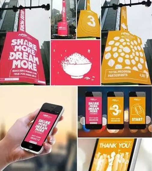 这是海航集团(HNA Group) 在纽约时代广场发起的为期两周的互动公益广告,旨在支持联合国世界粮食计划署(WFP),呼吁更多人关注贫困地区儿童的生存和教育问题,并运用移动互联科技激发人们与互外广告进行互动,参与到海航发起的公益活动中,为贫困地区学龄前女童贡献爱的力量。