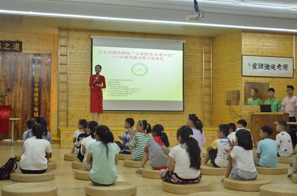 7月24日,广州市候鸟基金会主办的“心系候鸟,让爱开花”夏令营活动在广州市番禺区历奇山庄开营。 云付通董事梁志坚、共青团广州市番禺区委员会书记、广州市番禺区民政局社会组织管理科科长、广州市番禺区民政局未保办主任、广州市候鸟慈善基金会理事长、广州市番禺区华尔健康心理研究中心理事长等企业及机构的领导出席了本次活动,共同为孩子的健康成长构筑良好的环境。