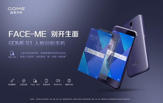 GOME S1,让科技于人更生动 正如前面的畅想,满手小龙虾却突然手机来信息的时候,你可以用GOME S1选择全新一种解决方式:通过面部识别中Face –Me功能,让手机识别出你作为机主的面孔的同时,为你展现真实而完整的信息内容,而此时别人看到内容仅仅为“你有一条未读信息”。释放双手而又彻底保护信息安全,何乐不为? 换一个场景,在拥挤的车厢中面对诸多茫然却紧盯屏幕的双眼,面对该不该在大庭广众下输入密码的窘境,你也可以用GOME S1选择全新一种解决方式:通过面部识别加密手机软件,越过密码输入过程,直接启动软件。释放记录琐碎密码的大脑空间而又防止公共场合密码泄露,何乐不为? 而手机识别你面孔仅需0.18秒的时间,无论是面部识别解锁,还是Face-Me体验甚至是面部识别软件加密,0感知的过程甚至让你还没反应过来就完成了。释放双手的自由,释放属于你更多的天性去感受生活、科技带来的体贴与美好。 更多的,GOME S1甚至为你在忙碌的工作中,开拓出一片专属于你的生活领域。通过脸部识别进入的专属空间里,你可以存放关于生活的一切,如子女的成长历史,甚至你可以独立存放应用软件,如身体健康检查的应用软件等。