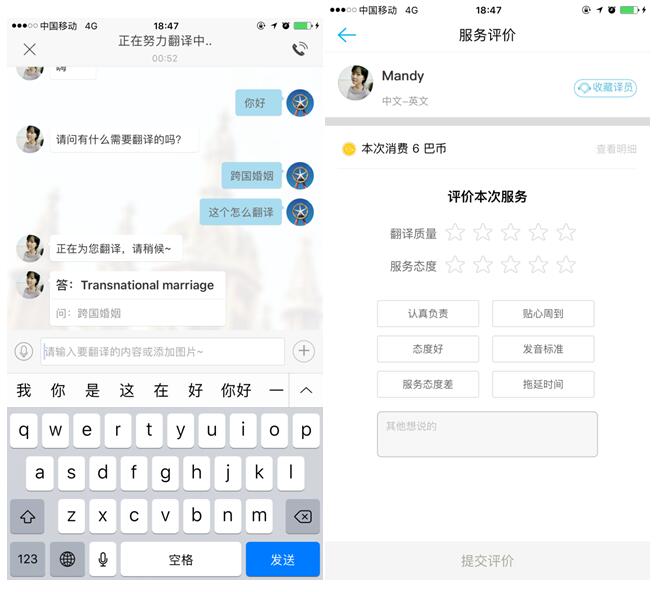 笔者使用了一下真人翻译App,可以随时沟通语言问题,结束后可评价并收藏译员,非常直观方便。 |