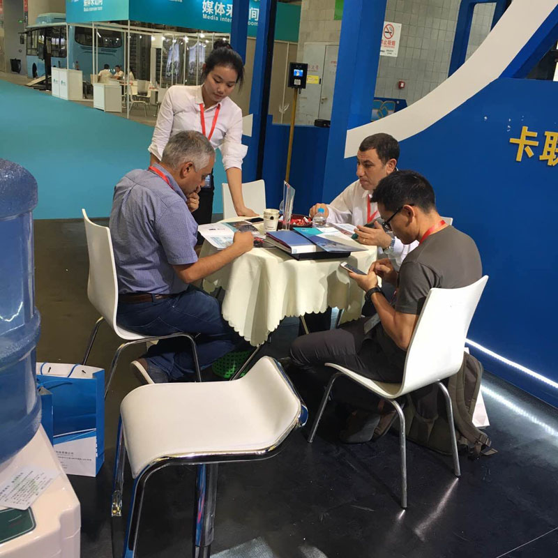 展会进行的第一天本报记者在现场了解到,卡联股份展区设计风格独特新颖,创意十足,寓意深厚,体验产品模式如同现实生活,国内外观展者络绎不绝,特别对卡联股份型号为CL1306公交刷卡机(带扫码功能)兴趣极高, 完全支持微信、支付宝、网银、邦客惠APP支付,1秒内能完成支付,特别是结合卡联股份云平台大数据屏幕,可以观察到每一个区域乘客刷卡的情况,震撼每一位国内外观展者,让人不禁想起淘宝“双十一”的数据大屏幕,很多观展者亲自打开手机进行体验,或下载卡联股份名为“邦客惠”的APP亲自体验,甚至不少客车厂商当场签定了合作意向书。.