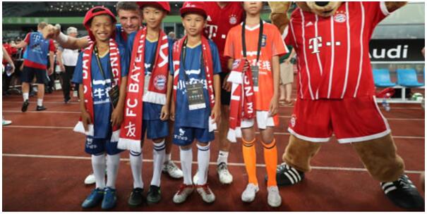 7月21日,小牛在线携手2017国际冠军杯中国赛在深圳龙岗大运中心举办主题为“让宝贝的世界变大”的公益见面会。期间,国际著名足球俱乐部拜仁慕尼黑球员托马斯-穆勒、胡梅尔斯、里贝里,莱万多夫斯基等作为特邀嘉宾出席了此次公益活动,与来自梅州市五华县两所贫困学校的六名“足球小将”进行互动交流。值得一提的是,这六名“足球小将”也将作为7月22日,2017国际冠军杯中国赛深圳站AC米兰对拜仁慕尼黑赛事的牵手球童,实现与国际著名足球明星共同奔跑在绿茵赛场的梦想。